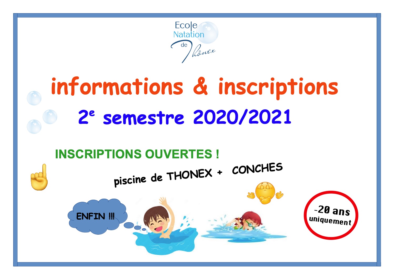 Nous restons à disposition pour tout autres renseignements via notre e-mail (secredtariat@ecolenatationthonex.ch) ou par téléphone au 022/349.04.22.